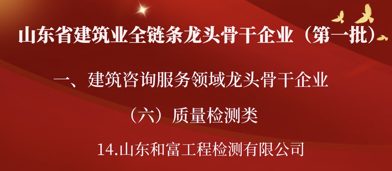 为有效提升我省建筑业企业整体实力,打响“好品山东·齐鲁建造”品牌,培育发展潜力大、市场认可度高、辐射带动能力明显的建筑业全链条龙头骨干企业,省住房和城乡建设厅开展山东省建筑业全链条龙头骨干企业(第一批)评选,山东和富工程检测有限公司成功入围质量检测类龙头骨干企业(第一批)名单。