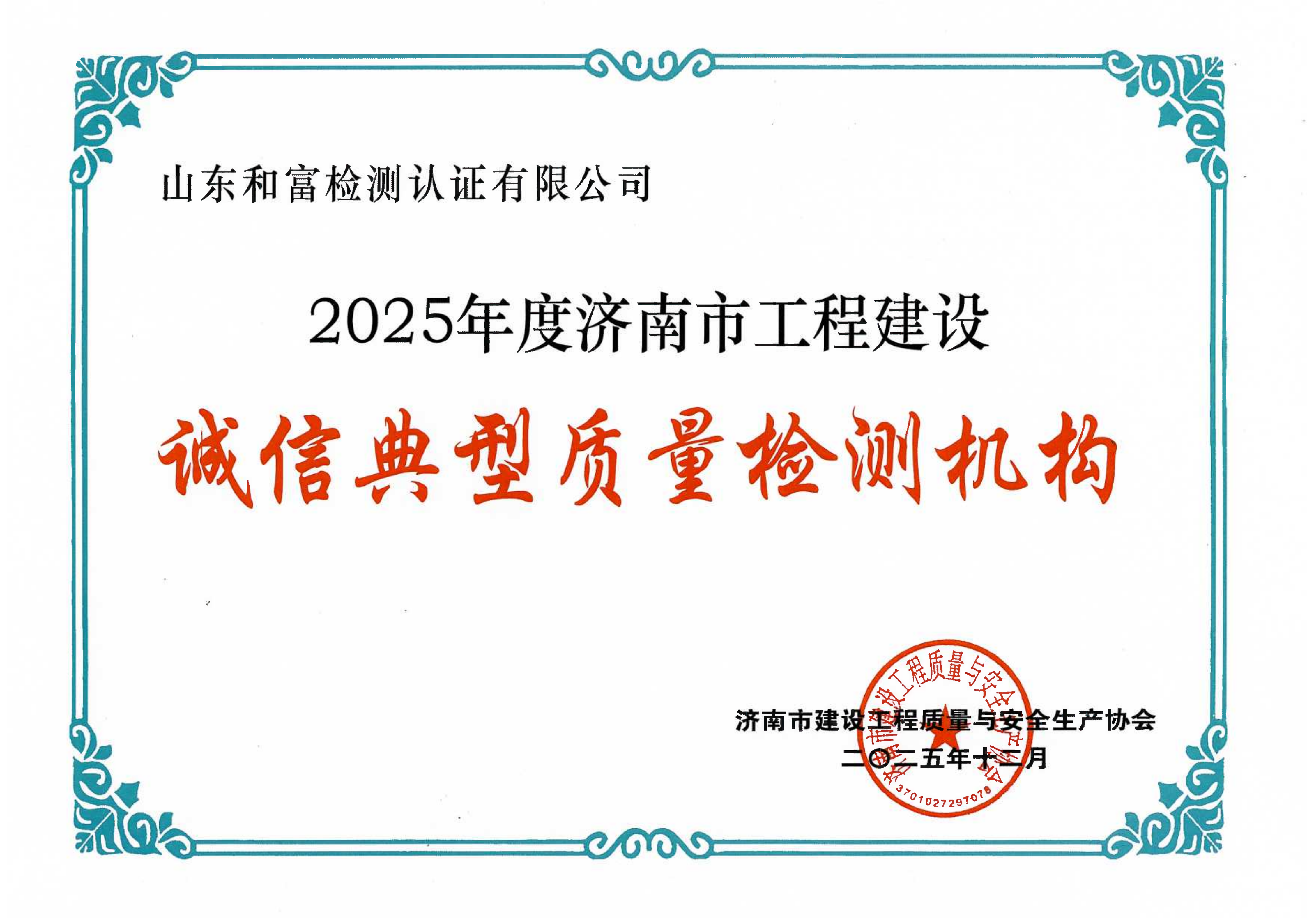 喜报!山东和富检测认证有限公司获选 “济南市工程建设诚信典型质量检测机构”